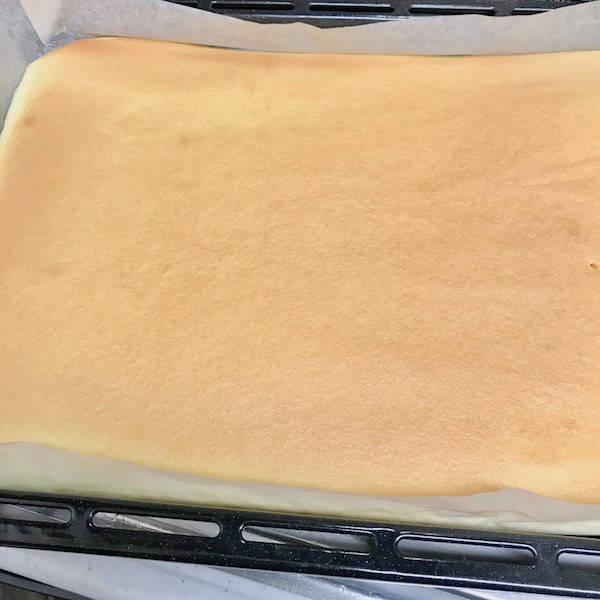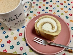 卵を泡だてながらロールケーキにしようか、シフォンケーキにしようか迷いましたが、クリームたっぷりがいいなと思い、ロールケーキにしました。