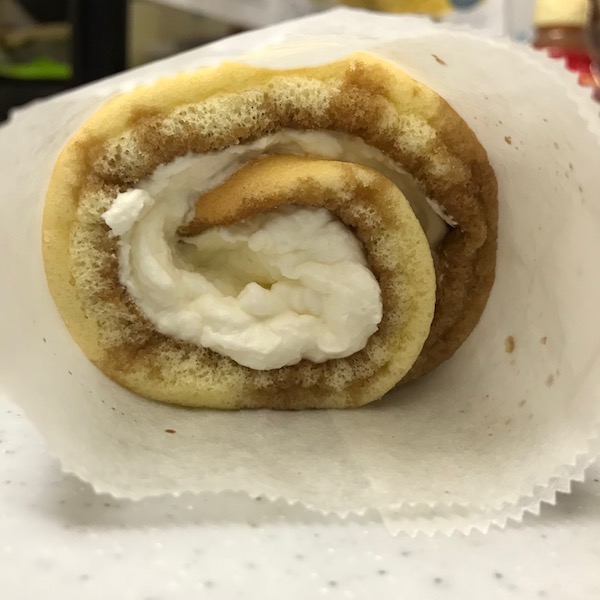コーヒーシロップを塗ったら生クリームよりチーズクリームを巻きたくなったので、結果ティラミス風です。