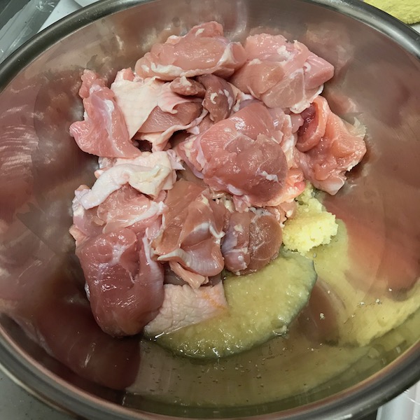 塩麹とニンニク、ショウガのすりおろしがすでに入ってます。