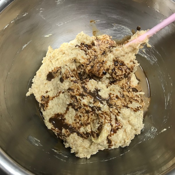 インスタントコーヒーをお湯で溶いて加え、マーブルになるようにざっくり混ぜます。