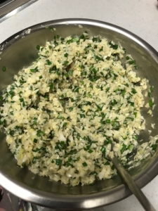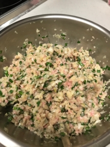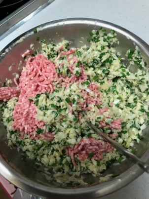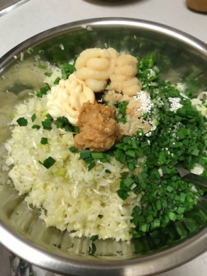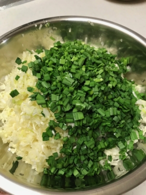 2.ネギ、ニラもみじん切りにして絞ったキャベツと合わせる。