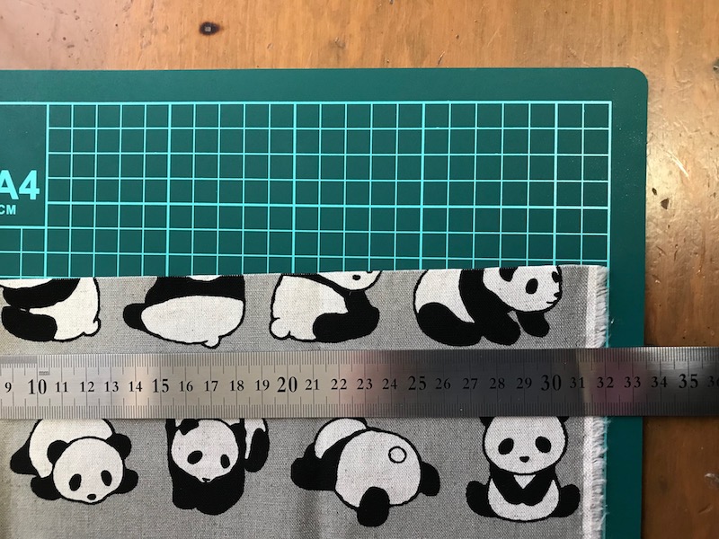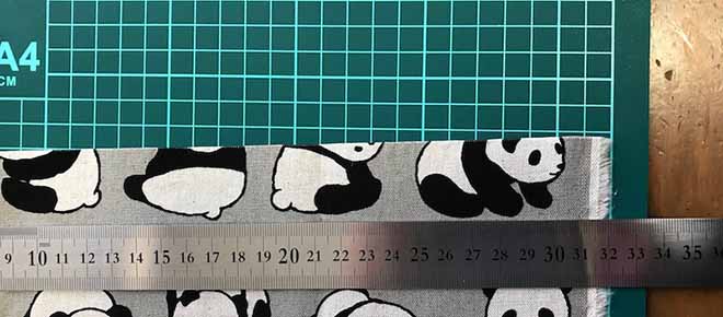 アイロン台やテーブルなどの角を使ってミミと端が直角になるように整えましょう。