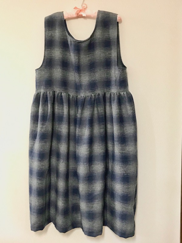 チェックの生地は折り返しのラインを決めやすいし、アイロン無しでいけるので早く完成できますね。