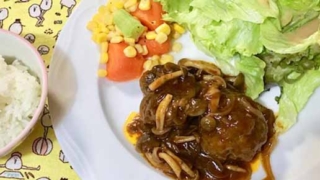 今日の晩御飯【煮込みハンバーグ】糖質オフならパン粉なしで